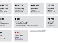 Celkový počet ukončených laboratórnych PCR testov doteraz je 1 093 761, pričom takto bolo pozitívne testovaných 109 226 osôb.