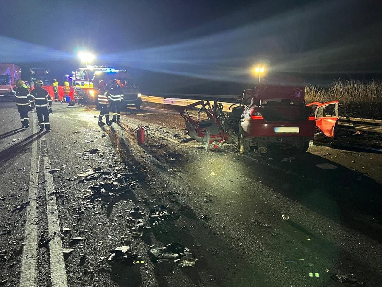 TRENČÍN - Dnes krátko po polnoci došlo na diaľnici D1 pri Trenčíne k tragickej dopravnej nehode. Osobné auto sa čelne zrazilo s kamiónom, na miesto smerovali všetky záchranné zložky.