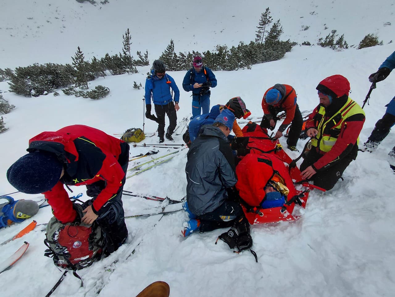 Horskí záchranári po príchode pacienta ošetrili, uložili do transportného prostriedku a pokračovali v transporte k Popradskému plesu.