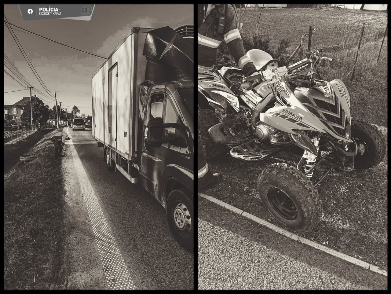 Podľa doterajších zistení vodič viedol štvorkolku značky Yamaha po ceste I/79 smerom na Trebišov. „Rýchlosť jazdy neprispôsobil svojim schopnostiam, stavu a povahe vozovky ani vlastnostiam vozidla. Následkom toho dostal so štvorkolkou šmyk a pravou stranou narazil do ľavej bočnice dodávky značky Fiat Ducato,“ uviedla polícia. Po náraze zišiel mimo vozovky do priekopy. Dychová skúška u oboch vodičov bola podľa polície negatívna. Na štvorkolke vznikla škoda približne 500 eur, na dodávke škoda nevznikla.