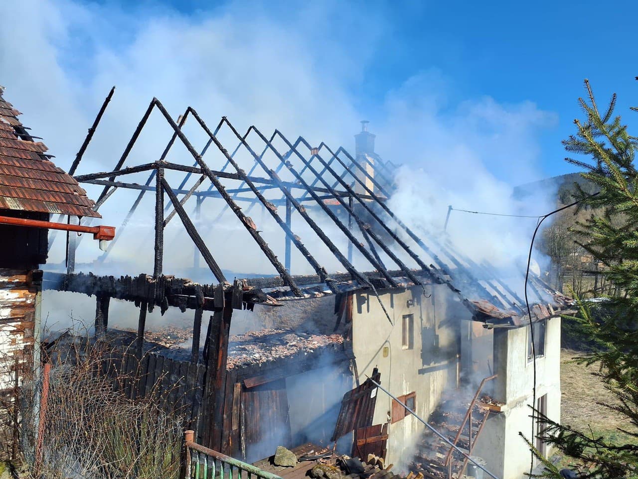 Počas požiaru domu v obci Turček sa dve osoby nadýchali splodín horenia (Zdroj: Facebook/Hasičský a záchranný zbor - Žilinský kraj)