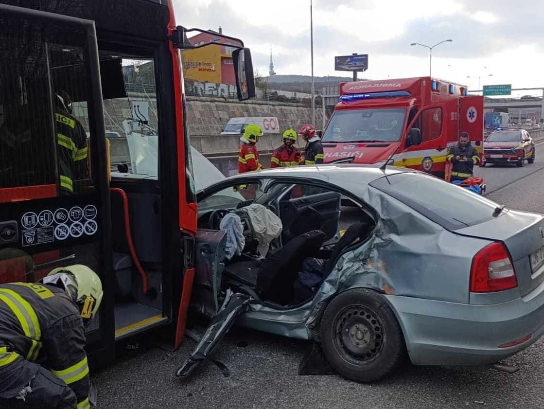 BRATISLAVA - Pre zrážku autobusu a osobného auta je na D2 pri zjazde na Patrónku smerom do Bratislavy prejazdný jeden jazdný pruh. Vodiči by mali využiť alternatívne trasy, tvoria sa kolóny. Informovala bratislavská krajská policajná hovorkyňa Katarína Bartošová. Hovorca Krajského riaditeľstva Hasičského a záchranného zboru v Bratislave Štefan Koči pre TASR uviedol, že hasiči museli vodiča osobného auta vyslobodiť. Cestujúci v autobuse sa nezranili.