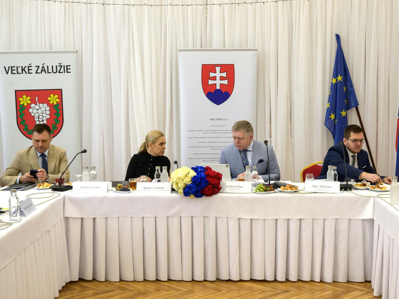 BRATISLAVA/VEĽKÉ ZÁLUŽIE - Vláda na svojom stredajšom výjazdovom rokovaní v obci Veľké Zálužie vyčlenila vyše 2,5 milióna eur pre okresy Nitra a Nové Zámky. Takmer 1,8 milióna eur z tejto sumy je určených na konkrétne projekty samospráv a organizácií pôsobiacich na území daných okresov. Kabinet sa na schôdzi zaoberal analýzou sociálno-ekonomickej situácie vo vybraných okresoch i návrhmi na zlepšenie v sociálnej a hospodárskej oblasti.