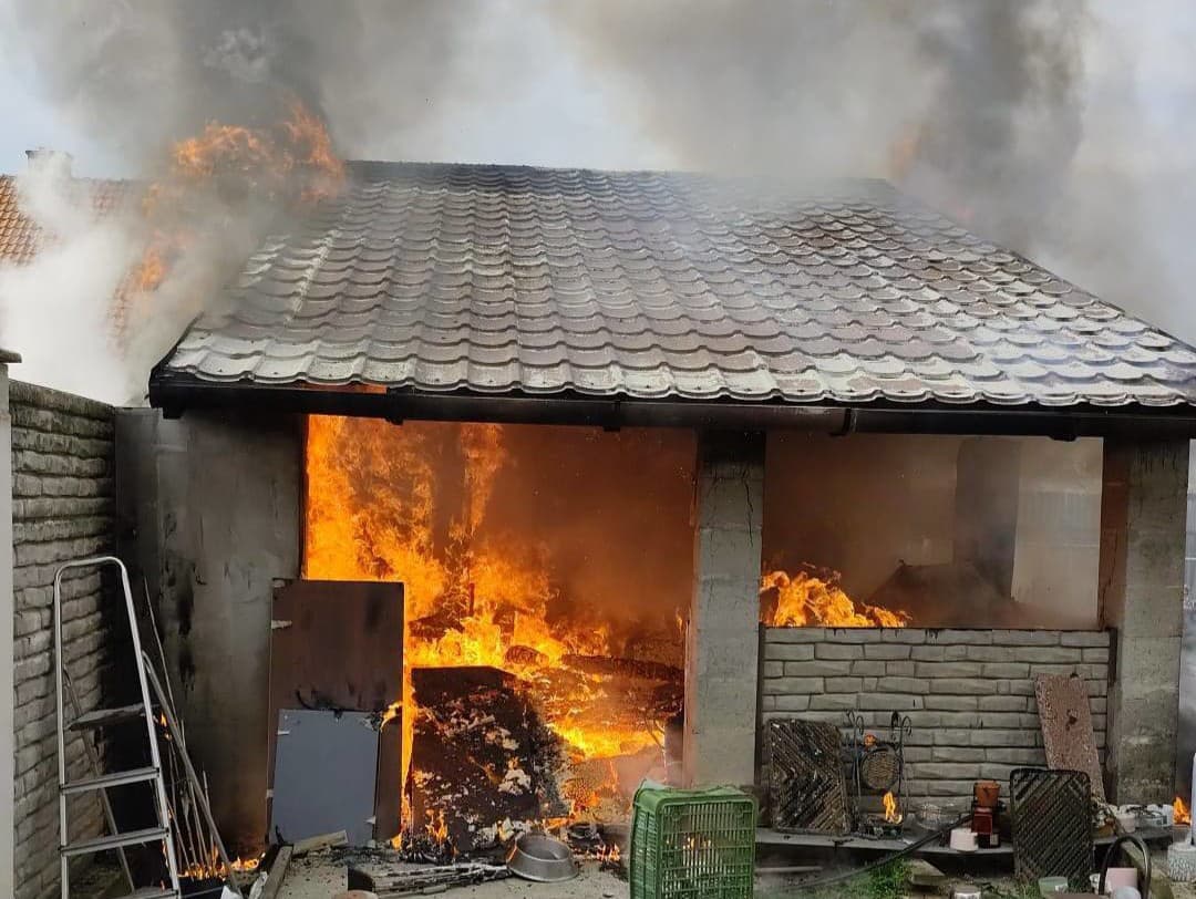 Požiar stavby pri rodinnom dome v Maduniciach. (Zdroj: Facebook/Hasičský a záchranný zbor - Trnavský kraj)