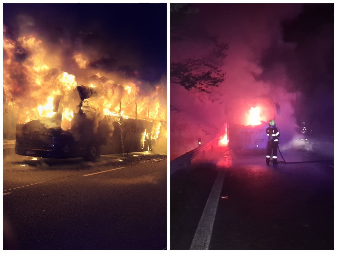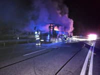 BIDOVCE - Nočná jazda autobusom, ktorý bol plný cestujúcich, sa skončila predčasne. Vozidlo vzplanulo takou veľkou intenzitou, že plamene bolo možné v nočných hodinách pozorovať aj z diaľky. Fotografie z celého incidentu vyzerajú desivo, no treba dodať, že cestujúci ich už v tom čase sledovali z prostredia mimo vozidla a stihli včas vystúpiť.