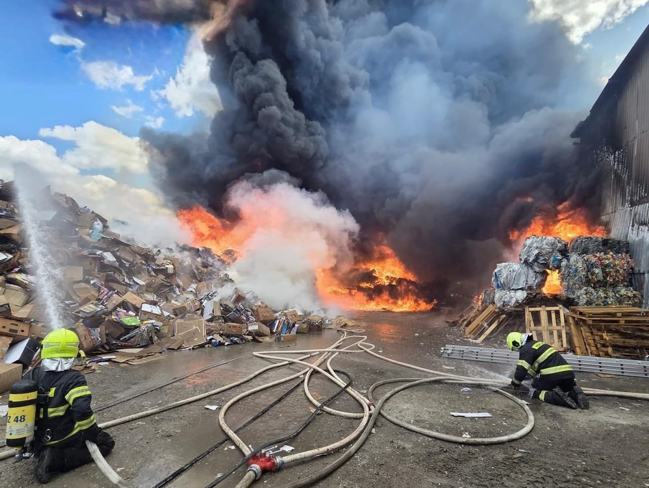 BAJČ - Profesionálni hasiči spolu s členmi dobrovoľných hasičských zborov okolitých obcí aktuálne zasahujú pri požiari triedičky odpadu v areáli spoločnosti v obci Bajč, okres Komárno.