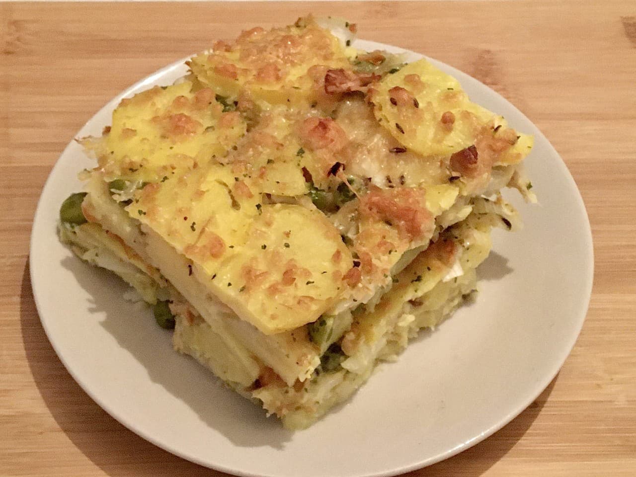FOTORECEPT Gratinované zemiaky s údeným syrom a hráškom: Lacný obed pre celú rodinu chutí, aj keď vychladne!