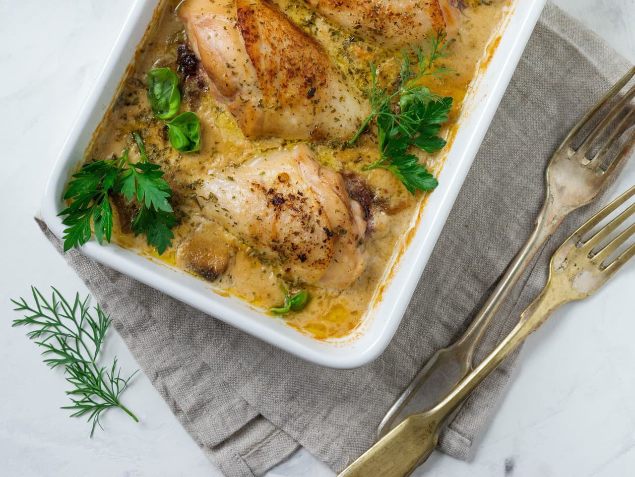 Recept na dnes: Jarné kuracie stehná so smotanou a hráškom