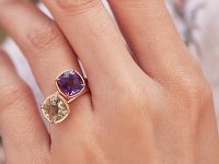 Ku klasickým príležitostiam, kedy je žena obdarovaná prsteňom, patria predovšetkým zásnuby a svadba. To ale väčšinou žena dostáva prsteň s čírym diamantom a jednoduchý krúžok. Nejedna ale túži ozdobiť svoju ruku výraznejším prsteňom s farebným drahokamom. K atmosfére Vianoc sa bude hodiť napríklad ametyst. Ten býva označovaný za duchovný kameň a je mu pripisovaná schopnosť uvoľňovať stres. Čo napríklad prsteň z ružového zlata s veľkým ametystom v módnom výbruse typu cushion?