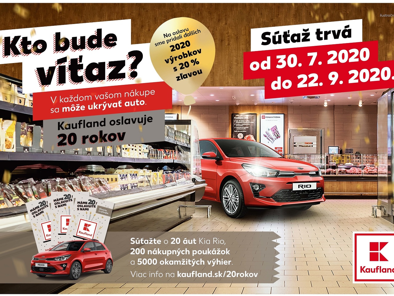 Obchodný reťazec Kaufland oslavuje a pri tejto príležitosti sa rozhodol odmeniť aj svojich zákazníkov. Od 30. júla až do 22. septembra pre nich pripravil spotrebiteľskú súťaž. V tomto období každý zákazník pri nákupe nad 20 €* dostane otvárací žreb. Okrem 5 000 okamžitých výhier, ktoré sú v žreboch ukryté, je možné každý žreb zaregistrovať aj do súťaže o hlavné výhry, medzi ktoré patrí 20 osobných automobilov Kia Rio a 200 poukážok na nákup v Kauflande v hodnote 250 eur. Okrem toho chcel reťazec ešte viac potešiť svojich zákazníkov, preto počas trvania súťažnej kampane zlacnil až 2020 výrobkov o 20 %.
