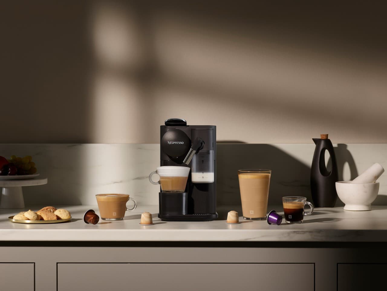 Vďaka jednoduchému a intuitívnemu ovládaniu nebudete potrebovať zručnosti baristu - stačí si vybrať Espresso, Lungo alebo mliečnu receptúru a stlačiť príslušné tlačidlo. Elegantný a kompaktný dizajn robia z tohto kávovaru štýlový doplnok, ktorý si svoje miesto nájde v každej kuchyni.