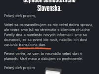 Ten znel nasledovne: „Pekný deň prajem, veľmi sa ospravedlňujem za nie veľmi dobrú správu, ale včera sme išli na stretnutie s klientom ohľadne Family dňa a namiesto nových informácií sme sa dozvedeli, že sa event ide zrušiť, nakoľko ich dosť zasiahla transakčná daň. Pevne verím, že vám to neurobilo veľmi škrt v plánoch. Mrzí ma to a ďakujem za pochopenie." Situácia moderátora Krnčoka poukazuje na širší problém, ktorý môže mať transakčná daň na ekonomiku, kultúru i každodenný život ľudí. Diskusia o jej zmysluplnosti tak ešte zďaleka nekončí.