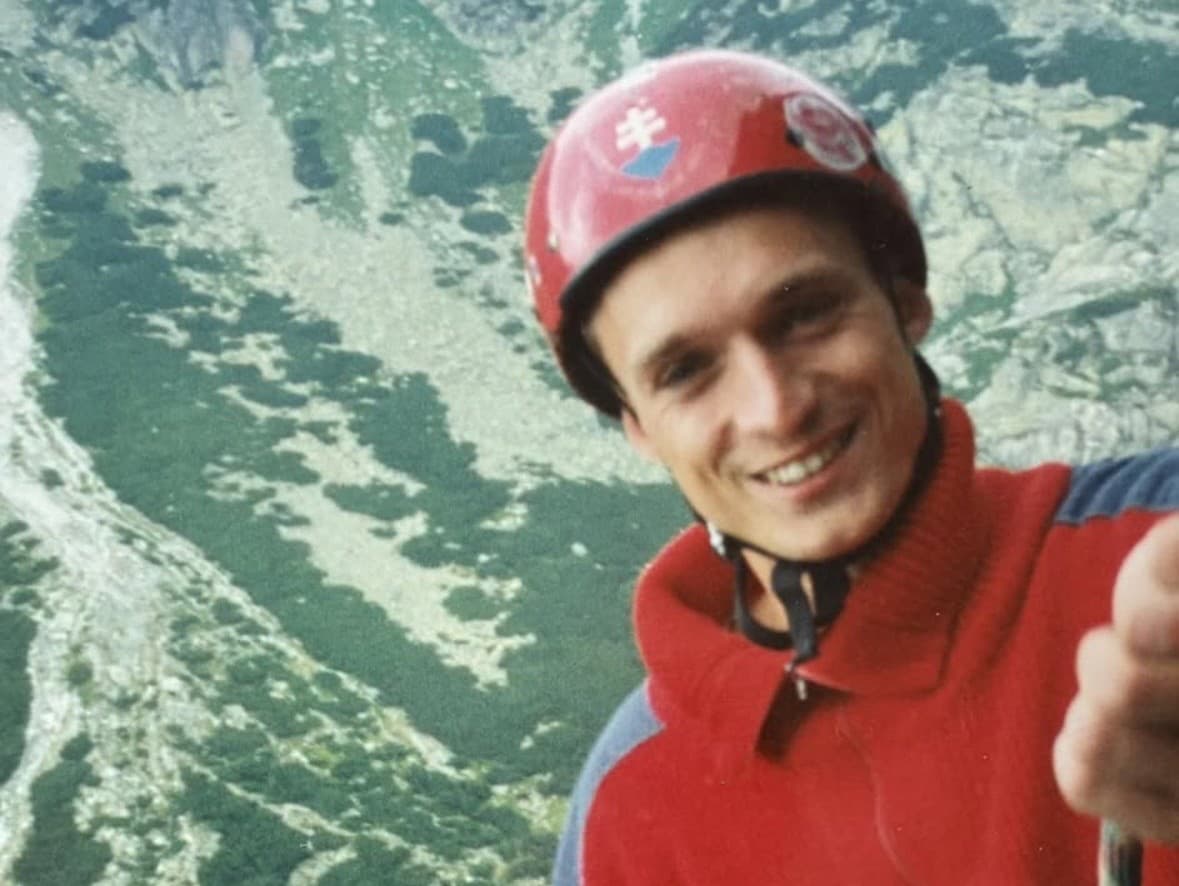 „Našiel som takúto spomienku. Strašne sa smejem. Vek 19 rokov, krivé tesáky, 69 kg a lezenie v Tatrách ako jediná životná priorita. Všetky znaky výbavy lezca začiatku deväťdesiatych rokov pokope. Ušitá sedačka, vyšívaný sveter z Horskej, odpílená Cassida a najpopulárnejší model západného lana – Edelweiss – tých čias. Pod nástupom neskôr v druhej dĺžke zapytnenej Palovej cesty „Via Verona“ na Veľkej Lomnickej veži," napísal moderátor k 35 rokov starému záberu. Viete o koho ide? Správnu odpoveď sa dozviete na druhej strane.