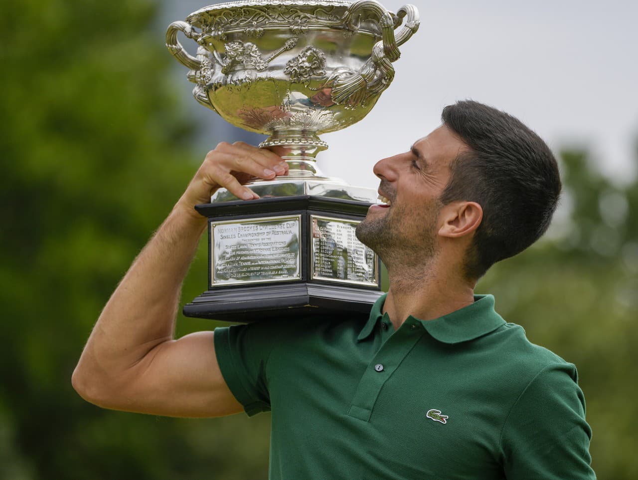 Srbský tenista Novak Djokovič s trofejou pre víťaza Australian Open (Zdroj: SITA/AP/Ng Han Guan)