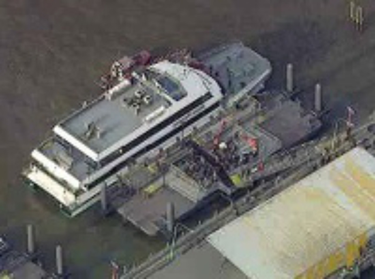 Plavidlo typu katamarán dopoludnia miestneho času (popoludní SEČ) tvrdo prirazilo k mólu číslo 11, rad cestujúcich náraz zrazil na zem. Predná časť jedného z trupov je prerazená.