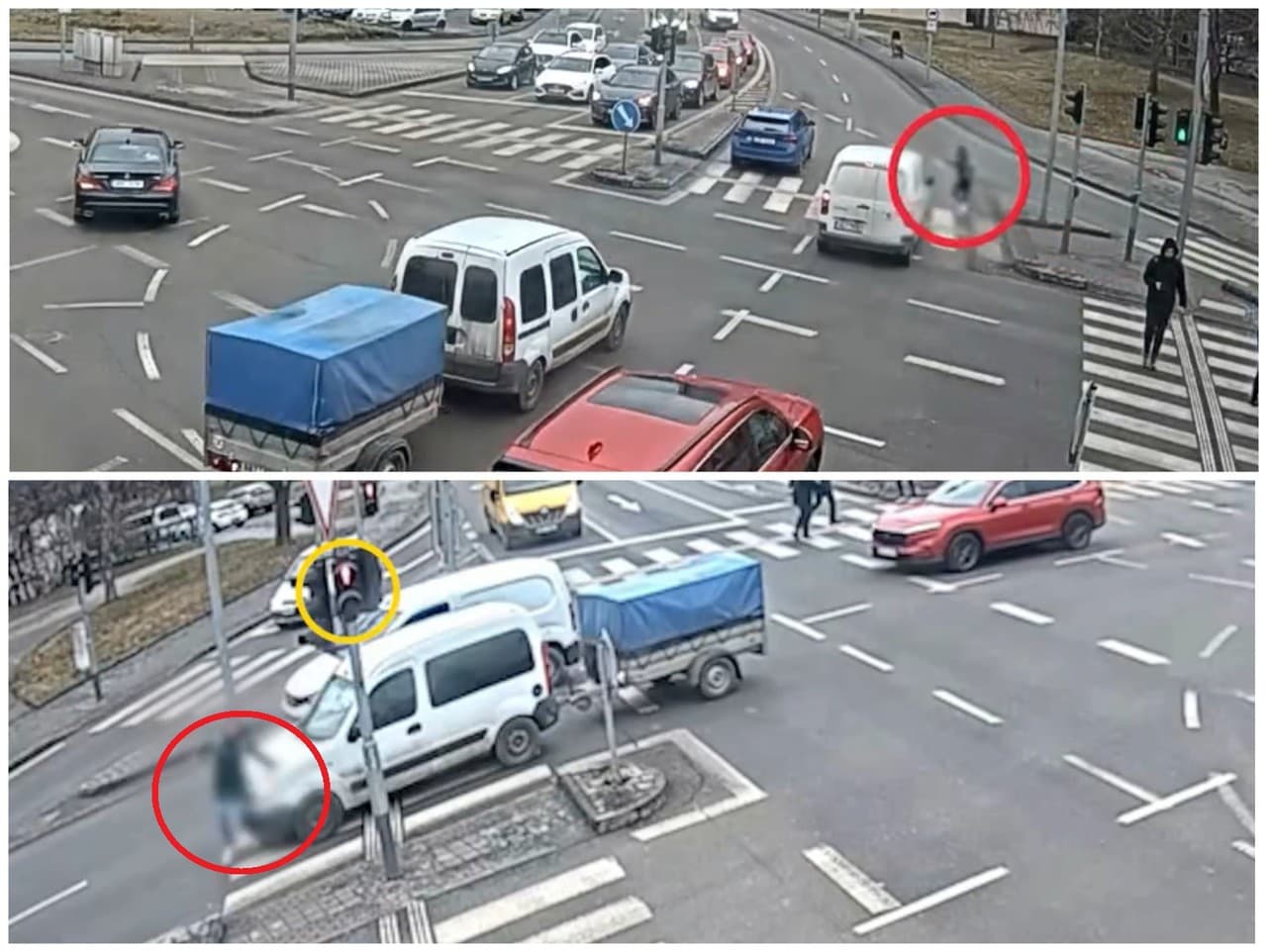 BRNO - Mestské kamery v Brne zachytili moment, keď žena vbehla do rušnej križovatky napriek signálu stoj. Zatiaľ čo vodič v bližšom pruhu dokázal zastaviť, vodič vo vzdialenejšom pruhu ju už nestihol spozorovať a došlo k zrážke.