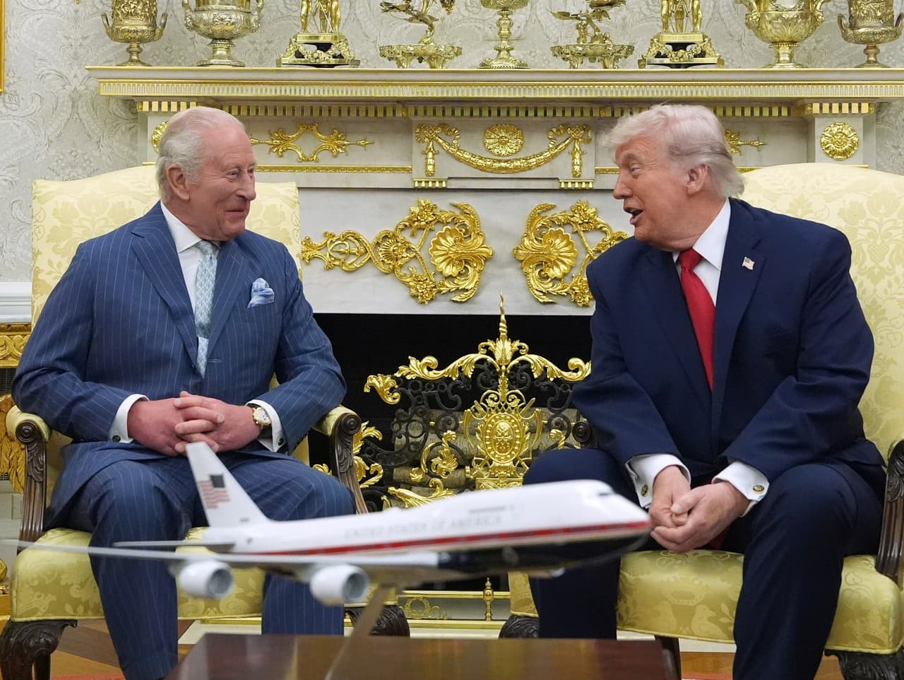 Po jeho prejave preleteli nad Bielym domom štyri americké lietadlá, zatiaľ čo Trump, jeho manželka Melania, kráľ Karol a kráľovná Kamila dianie sledovali, informuje AFP.
