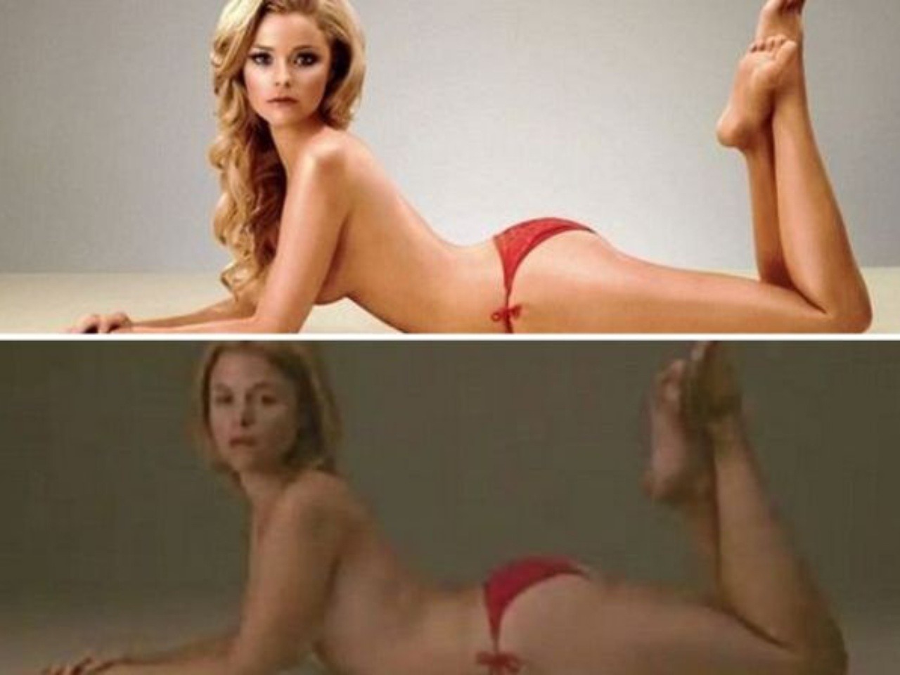 Hlavnou aktérkou je priemerne vyzerajúca dievčina, ktorú photoshop premenil na bezchybnú krásku. Na scénu prichádza nenalíčená a len v spodnom diele červených bikín.