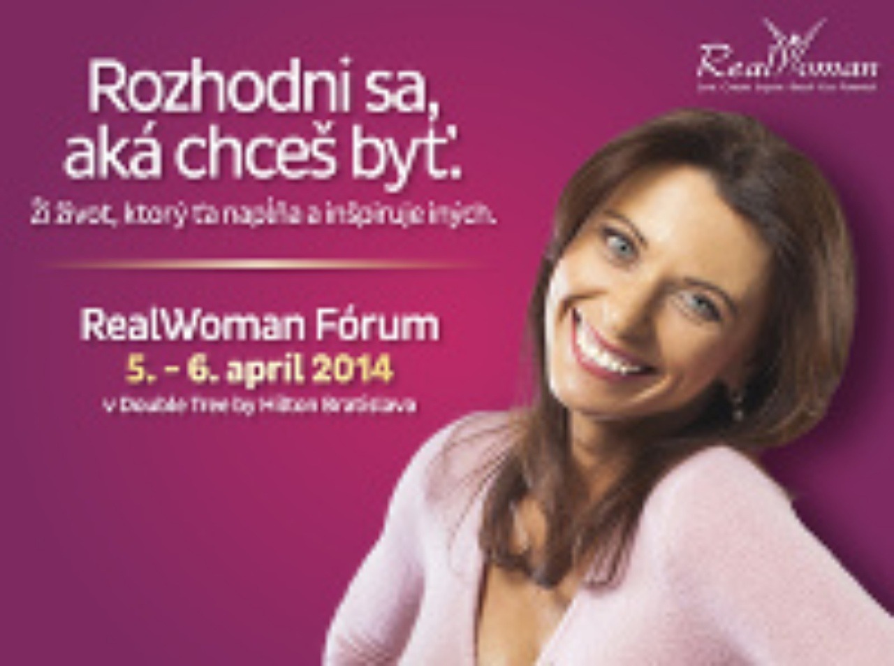 Tretí ročník RealWoman Fóra 2014 sa bude konať v Bratislave, v hoteli DoubleTree by Hilton 5.-6. apríla 2014. Je otvorené pre všetky ženy v akomkoľvek veku a životnom štádiu, ktoré hľadajú riešenia, podporu a posun vpred. Sú to dva intenzívne dni plné inšpiratívnych príbehov svetoznámych spíkrov a praktických tréningov.