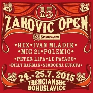 24.-25.7. ŽÁKOVIC OPEN 2015 Trenčianske Bohuslavice už pätnástym rokom otvoria brány obľúbeného festivalu Žákovic Open. Dôkazom kvalitnej slovenskej a českej pop music je zoznam hudobníkov, ktorí tento rok vytvoria pravú žákovickú atmosféru: |