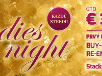 Dámy, pri stoloch vás nikdy nie je dosť, preto vás každú stredu pozývame na turnaj Ladies Night, kde prvý vstup neplatíte! Džentlmeni to majú iba za 21 € a na výhrach rozdelíme celkom až 3 000 €.