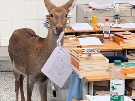 V škole v čínskej provincii S’-čchuan došlo k nečakanej a úsmevnej situácii. Do jednej z tried totiž bez váhania vošla laň, ktorá si okamžite našla netradičnú desiatu – pustila sa do hromady písomiek položených na lavici.