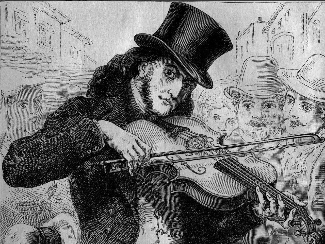Vysoký, čierno odetý muž s uhrančivými očami na pódiu opäť uchvacuje svojou husľovou hrou publikum. „Spolčil sa s diablom!“ šuškajú si diváci. Uverí tomu aj cirkev, ktorá potom bude zosnulému virtuózovi dlhé roky upierať kresťanský pohreb.
