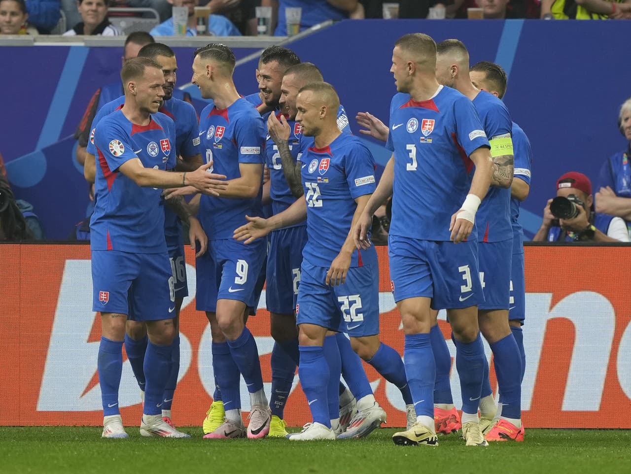 Slovenská radosť po góle do siete Ukrajiny