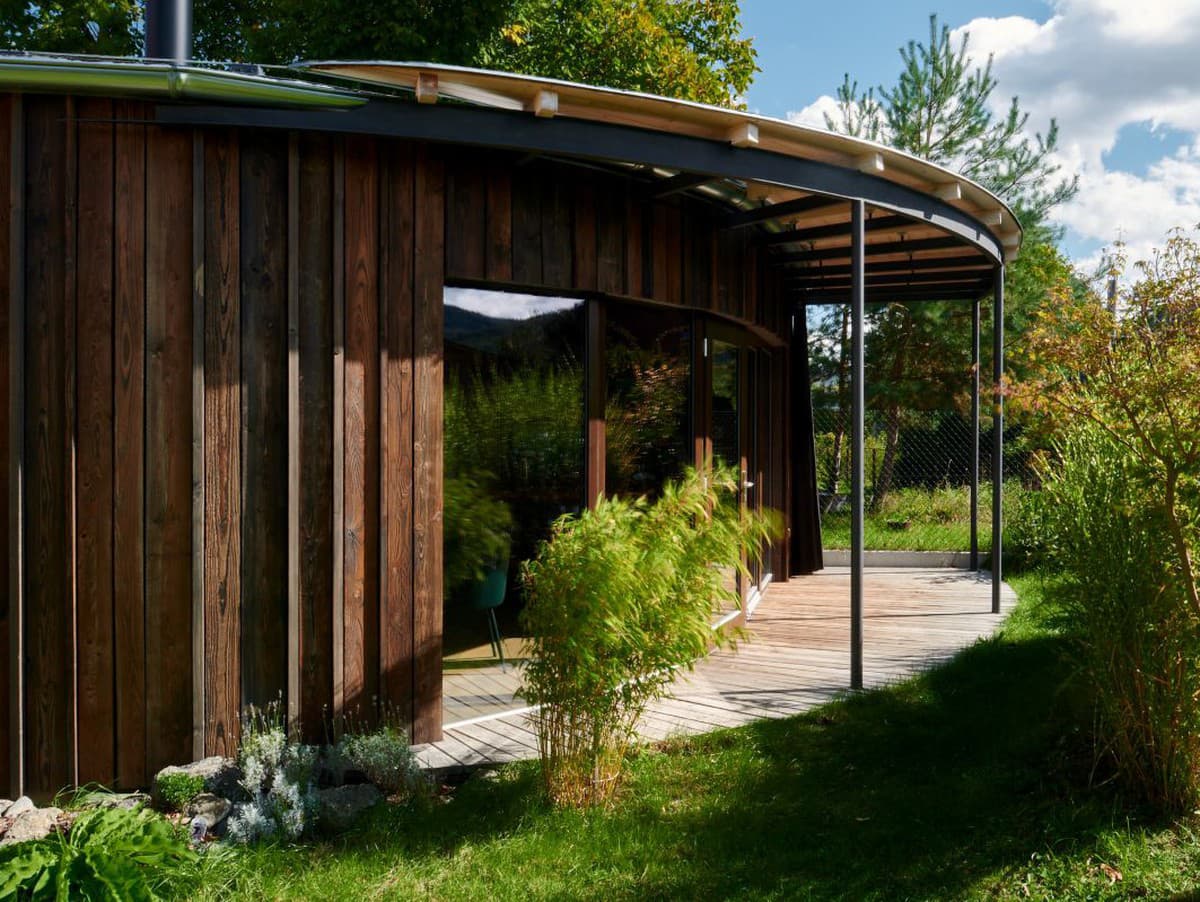 Malý dom s veľkým srdcom. Medzi domom rodičov a susedovou kôlňou sa usadila Hruška – nízkoenergetická drevostavba, ktorá síce nemá ambície byť veľká, no túži byť úplná. Citlivo zasadená do rodinnej záhrady, s výhľadom na brdské kopce vytvára priestor pre pokoj, prácu aj letné večery.