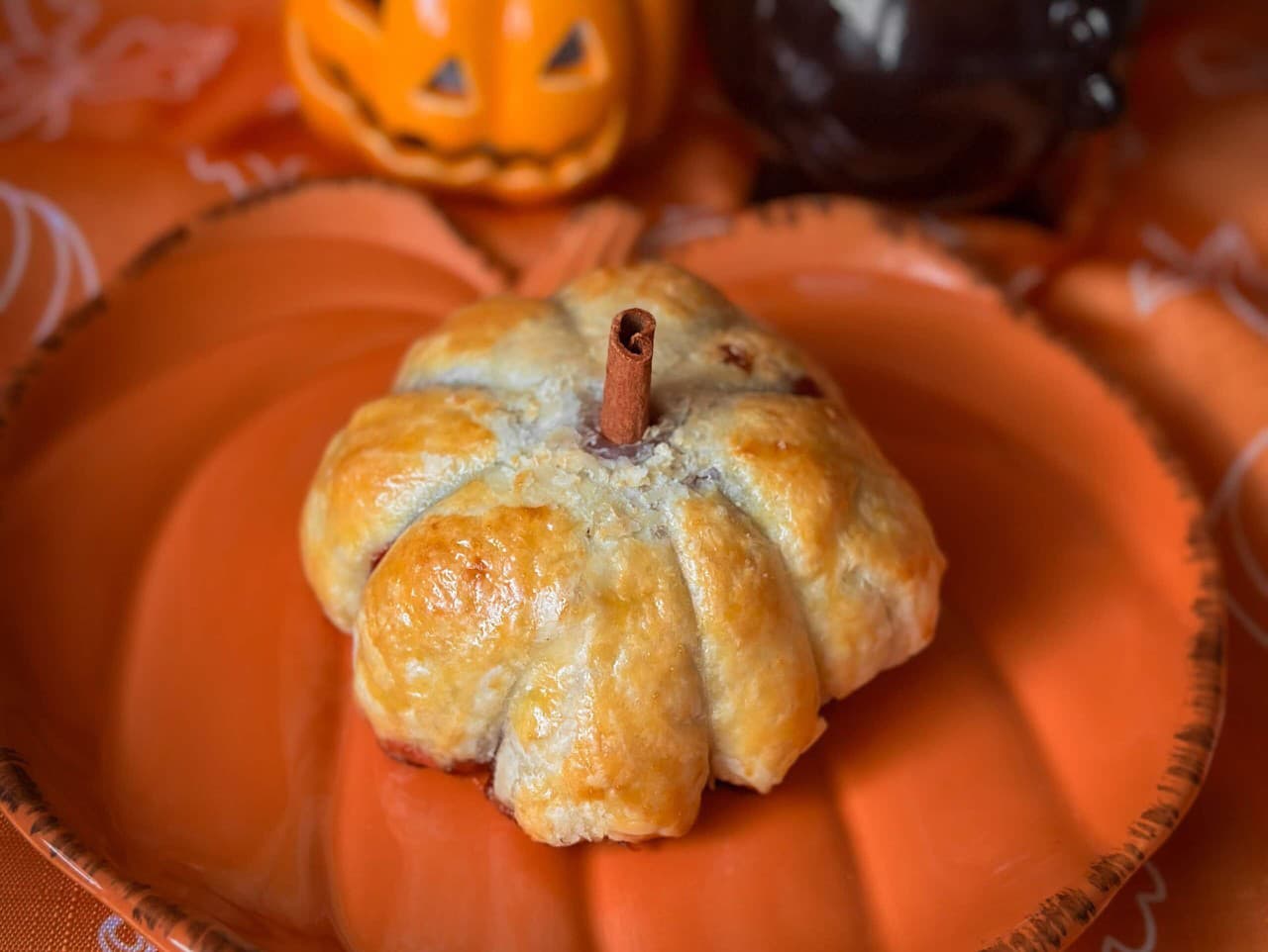 Halloweenska tekvica z lístkového cesta s prekvapením vo vnútri