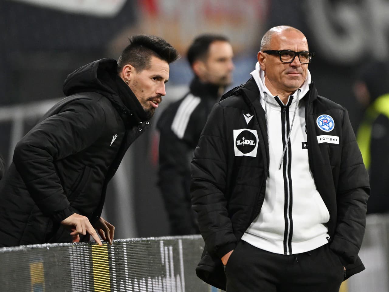 Na snímka sprava tréner Francesco Calzona (Slovensko) a asistent trénera Marek Hamšík